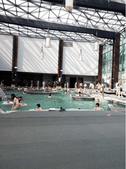 耍了会太阳开始大起来了,跑到室内泳池乘凉,还有休息椅跟空调哦!