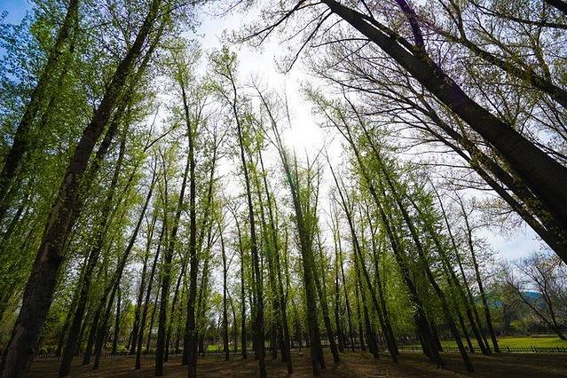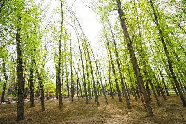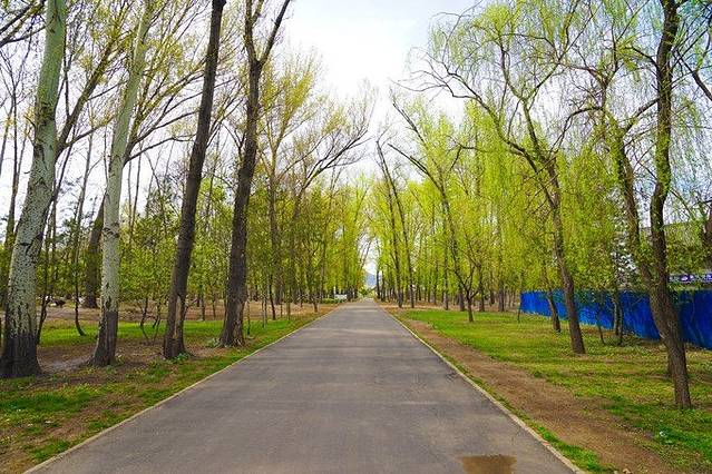一走进公园,映入眼帘的就是公路两旁的绿树。