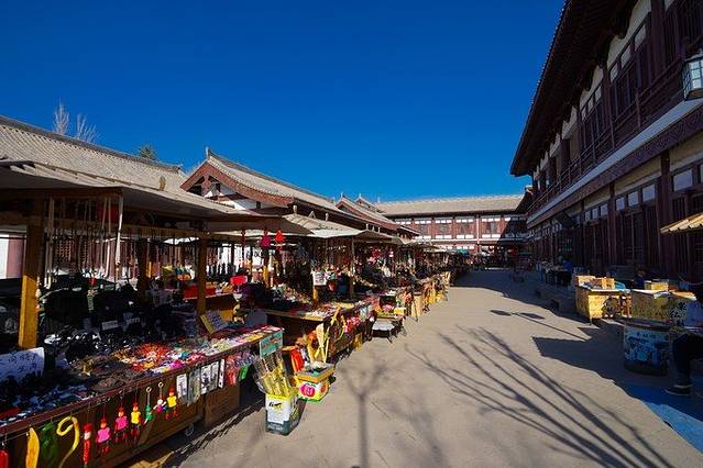 收拾完东西,大家依旧小包出行。走个10分钟就可以到华严寺了。