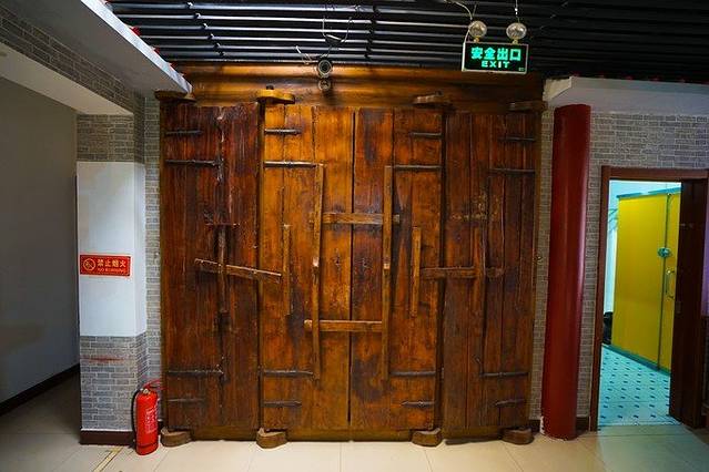 客厅的尽头,是一个木制的大门,应该就是一个装饰品,设计得也算别有用心吧。