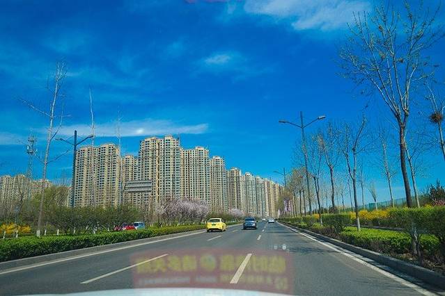 路上可以看到各大房地产商的楼盘,这里的楼距都很宽松,住起来应该很舒服。而且这里是不限购的哦,你可以买很多套房子。