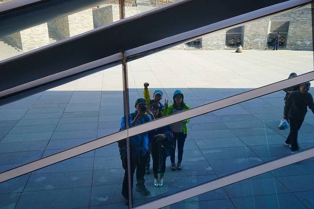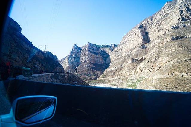 可惜,前几个月有石头掉下来砸到了悬空寺寺庙,所以现在正在开展查险工作。我们只能在广场这里下车拍几张照片。
