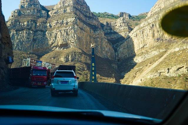 这里的运煤车很多,我们也看到了悬空寺的石碑了