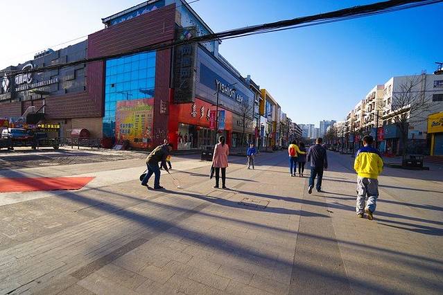 很多当地人在仿古街运动,这个小家庭,夫妻正和孩子玩着羽毛球。