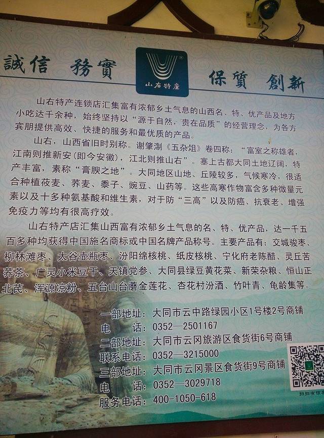 关于山西特产的介绍,我买了几瓶苦荞茶,星星和小蝶都买了一些,蜗牛什么都买,连凉粉都买。还好他的背包容量够大。