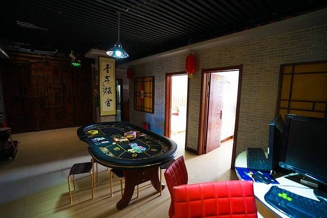 客厅的娱乐设施也是很齐全的,有棋牌桌、电脑、电视等。
