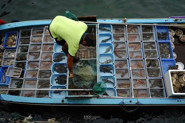 西贡市区的堤岸边有众多小艇供游客购买新鲜渔获