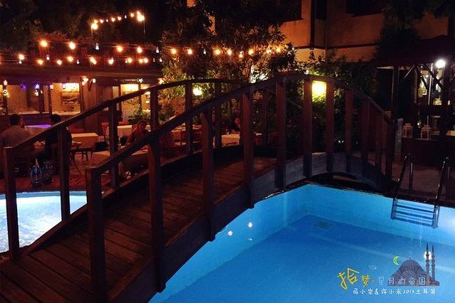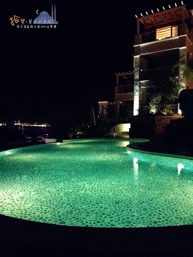 夜晚的院内泳池,很有格调