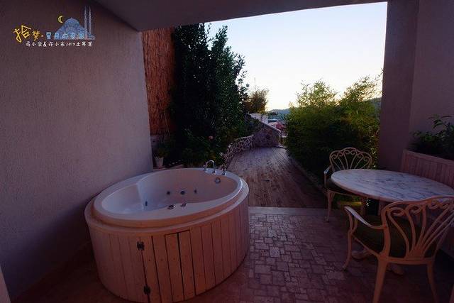 房间外是独家小院和露天大浴缸