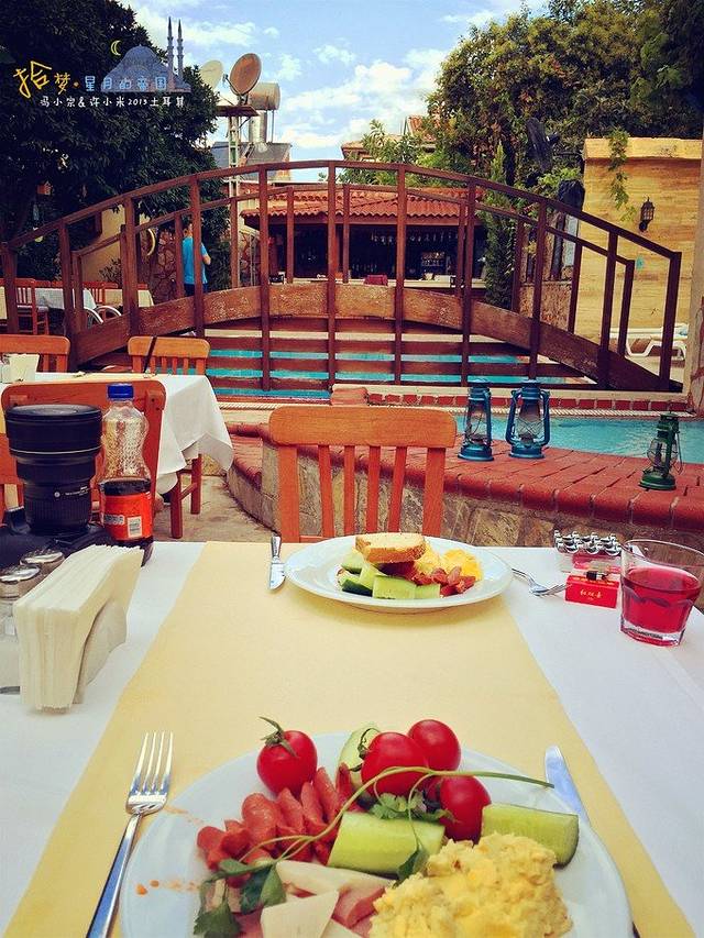 缺点:普通房间实在太小了,住宿条件也比较差,要不是因为在卡帕多奇亚的白天几乎全在外面,属于疯玩的两天,我肯定会加钱升级房间的。同时它的价格和它的房间面积相比,在这一地区就没有任何优势了。据了解,这家酒店是比较早加盟BOOKING的酒店,也是格雷梅比较早出名的酒店,因此在网上的预订也比较火爆,但是随着格雷梅旅游住宿业在这几年的迅猛发展,这个镇子上又有很多新兴起的旅馆,不仅条件更好,价格也要更便宜;另外它家的早餐不仅简陋,而且味道很一般,它家的早餐不是现做的,而全是从市场买的,猛一看洋洋洒洒摆了一大桌子的早餐,但仔细一看火腿肠切三盘盘,各种饼干摆五盘,各种果酱摆五盘,黄瓜切一盘,只有鸡蛋是煮了一下,让我觉得简直没法当早餐,倒像是去别人家串门,人家给你拿了一堆零食;果不其然,这家酒店从今年2月初我们预订在现在12月我写帖子的此时此刻,它的评分降低了很多,现在已经在140家格雷梅酒店中排名第106名,因此不建议大家订这家。
