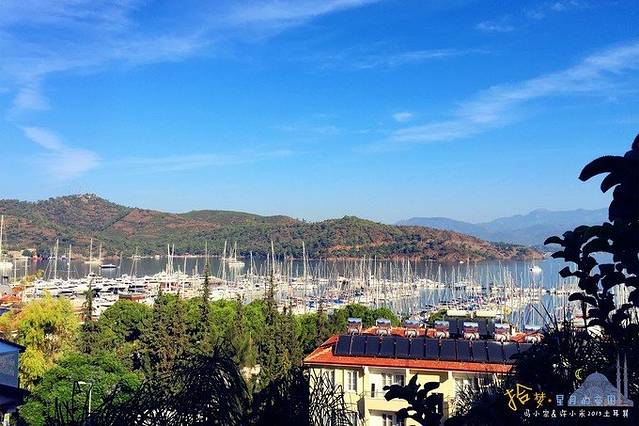 下午6点,终于抵达费特希耶,入住了最喜欢的酒店。费特希耶是一座土耳其南部的海边小镇,最著名的旅游项目莫过于此地的死海滑翔伞。这里的死海并不是指以色列的死海,而是费特希耶的奇特海岸线形成了一个大回湾,使得海水进入这里后变得波澜不惊,因此被称为土耳其的死海。费特希耶小镇很安静,在沿海码头,总停靠着密密麻麻的帆船进而形成一种独特的景象。