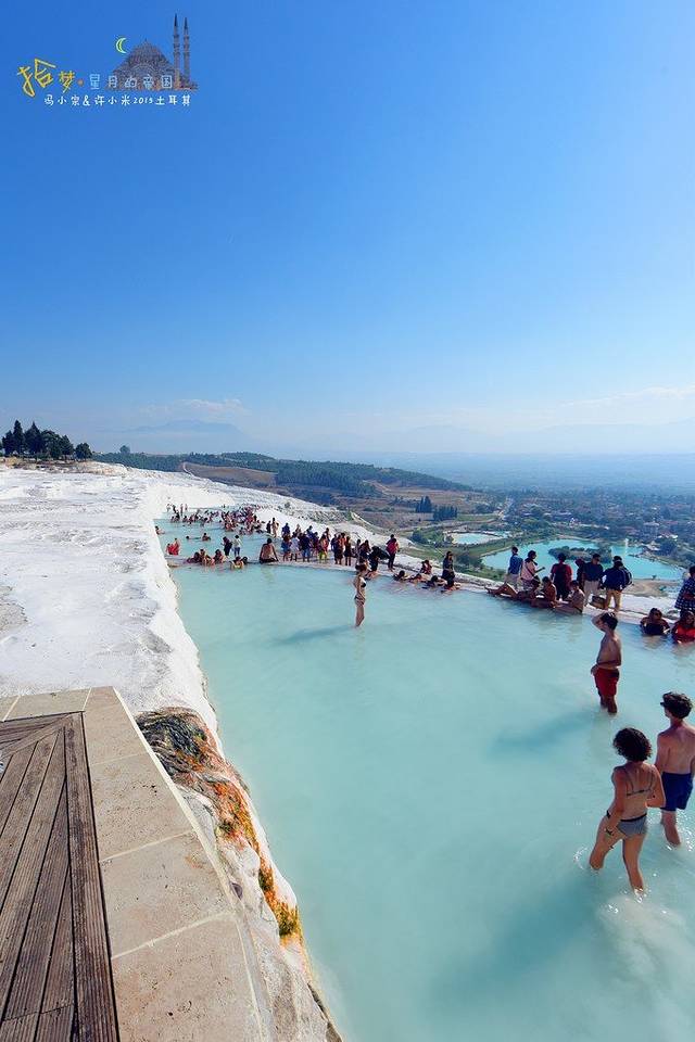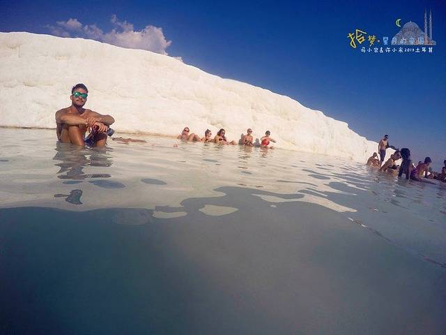 大片大片的老外在钙化池里泡温泉