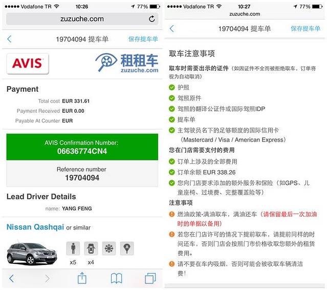 这是租车单。租车的细节不想说了,感兴趣的请看第八章租车篇。总之结果就是我们花了不多的钱从尼桑逍客升级为了宝马五系。在租车准备开走时,又遇上了在卡帕认识的几个自由行的女生,那个热心的女队长这次需要点小帮助,租车被换车的事挺常见,帮她量了后备箱又翻译了几句,不是多大的事,我们就各奔东西了,没想到回国后在她的微信里还转载了我们的微电影,并依然记得我们那微不足道的小帮助,心里很高兴,也感谢她在卡帕的热心,让我们的一日游那么完美。