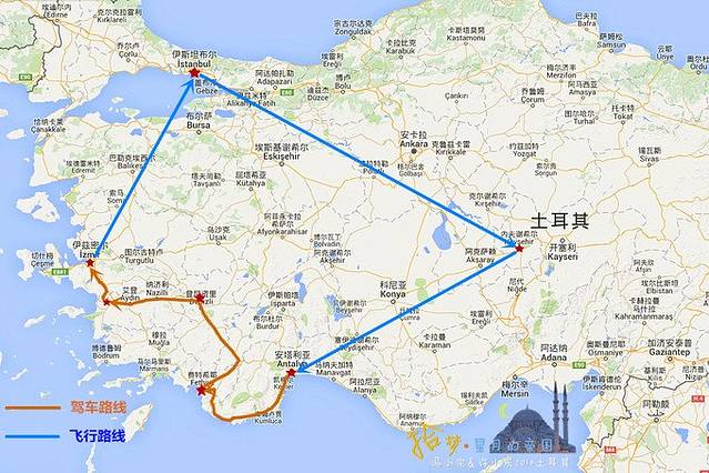 玩转土耳其一般都是来一圈大环线,起点和终点都是伊斯坦布尔,顺时针和逆时针的走法都行,无非是每个人在环线上选择了不同的目的地,目的地与目的地之间的交通工具不同,有自驾的,有坐飞机的还有坐夜巴的。其实行程定制很简单,只要把你想去的地方列出来,结合你的时间和预算一一删除,留下最想去的地方串连起来,一次行程就出来了。我们的行程是顺时针游土耳其,在境内坐三段飞机,中间一段租车自驾。其实我在这里更推荐大家逆时针玩,因为在安塔利亚和库萨达斯之间的D400沿海公路真的很美,但是如果像我们一样顺时针开车,就一直是在山崖一侧的车道开,如果要拍照还要穿过马路,很危险。