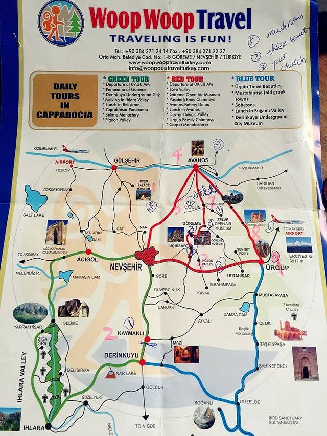 要说卡帕多奇亚地区住宿最方便的地方当然是格雷梅,这里是游完卡帕地区的中心,也是这一个区最繁华最完善的地段,经典的一日游红线和绿线的起点都是这里。格雷梅本身不大,而且大家无论是报名热气球还是一日游都会有人来酒店接送,因此年轻人不必纠结于地理位置,只要在你所能承受的价格内选一个分数高、自己喜欢的酒店就好了。但是如果带着老人去住的话,还是要尽量选离主街近的酒店,因为格雷梅的落差比较大,从主街向两边扩散的地域会呈现出比较陡的上坡,离主街越远的酒店位置越高,平时吃饭买东西往返所需要的体力消耗就越大。