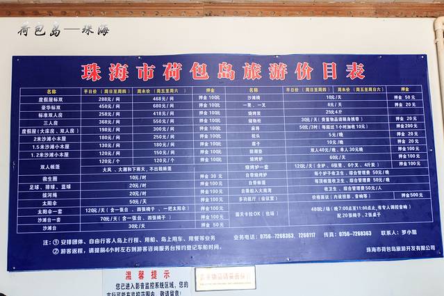 售票处就在高栏岛荷包岛码头,套票是100元/人(包括上岛费、来回船票费、岛内交通费、淡水费、垃圾费)。
