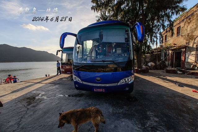 码头停车场很小,这些大巴就是岛上唯一的交通工具,共3辆,车还不错是空调大巴。