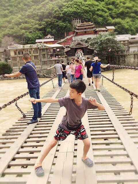 泸定桥在甘孜藏族自治州泸定县,下面就是奔流滚滚的大渡河。