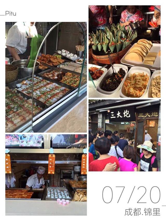 三大炮是著名的四川小吃,主要由糯米制成,由于在抛扔糯米团时,三大炮如“弹丸”一样,发出“当、当、当”的响声,故名“三大炮”。