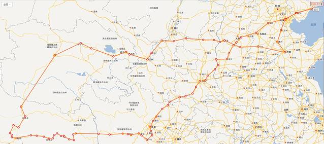 拉萨-当雄-纳木错-安多-唐古拉山口-可可西里-格尔木-乌兰-青海湖-西宁-中卫-太原-邢台-济南-德州-天津