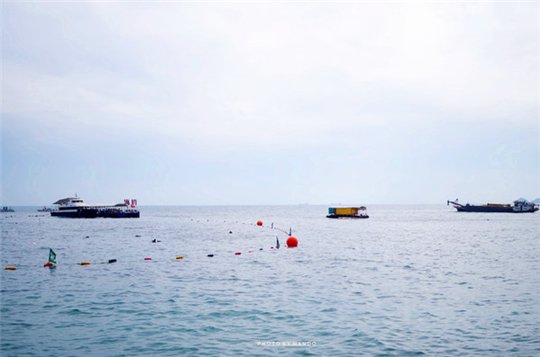 早上出发的比较早,从亚龙湾到蜈支洲的码头需要40分钟的车程,今天早上天气不是很好,阴天。