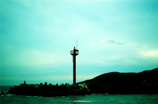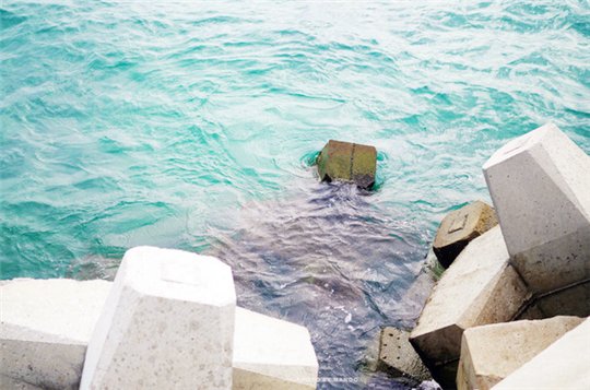 尽管没有什么阳光,海水也是淡淡的蓝色。