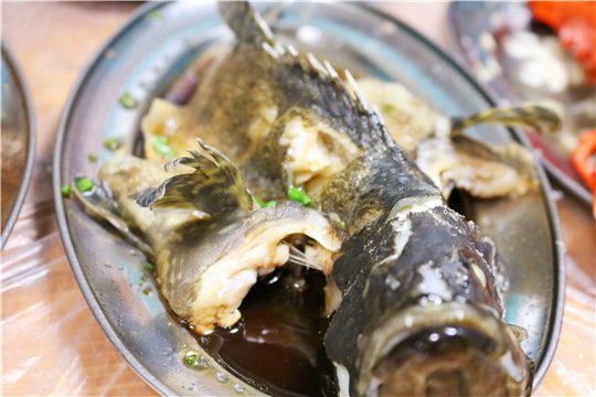 清蒸石斑鱼,这个鱼的肉非常嫩,蒸出来的味道也很香,夹一块鱼肉沾着盘子里的汁吃味道特别美。