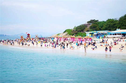 轮渡的时间不长,10度分钟吧就可以到蜈支洲入岛处了。尽管天气不怎么好,游玩的人还是很多。