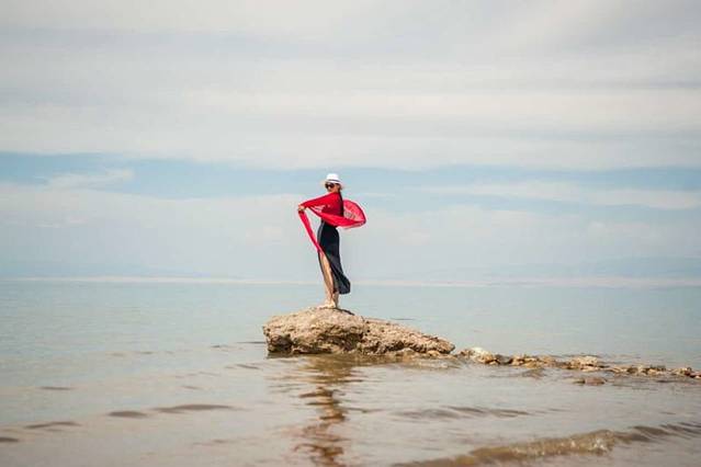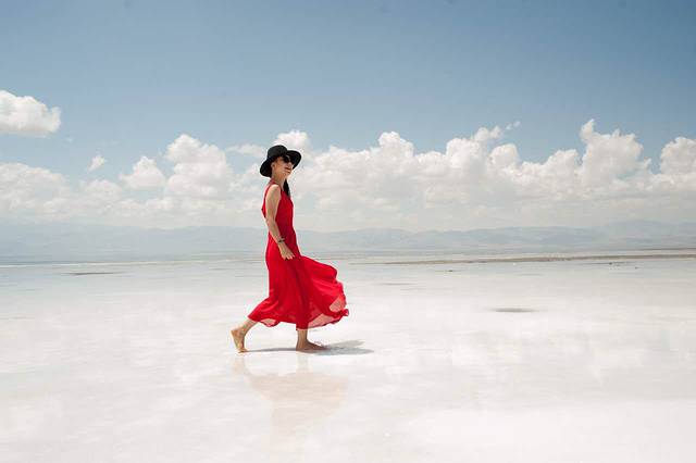 这个必须五颗星。这个季节去简直没有更美的了。一路山路。其实挺好走,但是旺季的话车多人多。山路很容易堵。(友情提示司机朋友们不要超车,因为上下山路只有两个车道,很容易堵车,也很危险)好不容易到了景区已经快到中午了。门票50RMB/位。进去之后可以选择坐小火车去湖中间游玩。但是排队的人超级多,所以我们选择步行。远远的看见盐湖都被惊呆了,白茫茫一片,一片一大片。分不清天跟湖的交界。迫不及待的往前冲,但是人很多,真的很多几乎都是擦肩而过。终于到了。找了一块地方,脱掉鞋子,放好。抱起裙子,踩进去,啊!好扎!!!真的很痛,跟指压板可以匹敌了。慢慢的往湖中心走,就越来越好了,盐颗粒开始变得很细,再中间就几乎没有了,全部结晶成跟冰面一样的固体层,上面还有薄薄的一层盐水。自己站在那里就感觉好梦幻。不说话的时候就真的感觉时间像静止的一样。虽然白茫茫一片看起来都一样,但是就是看不够。天空上云朵一片一片,湖面上,也是。带着太阳镜看见的盐湖有一种朦胧美,摘掉眼镜看见她的真实面目就突然想对着远处大喊一声,感觉自己小到跟蚂蚁🐜一样,天空的倒影在湖面就像小时候看的西游记里,上了天一样。分不清是天空还是湖面⋯⋯美呆了。我相信每一个去过的人都会喜欢到不想离开😆