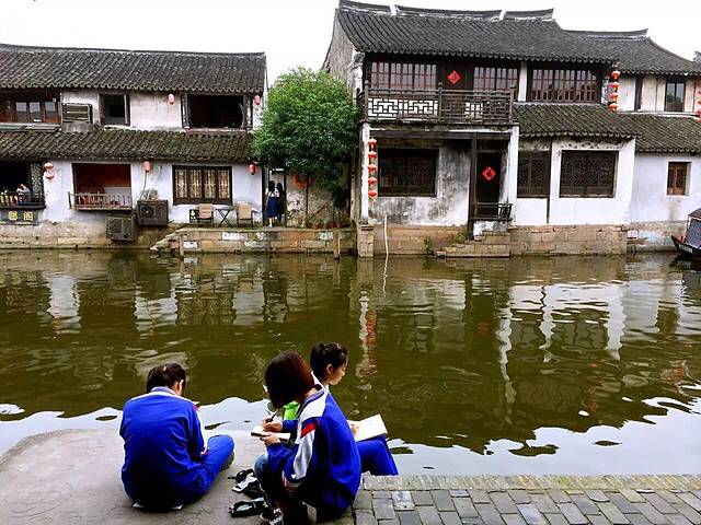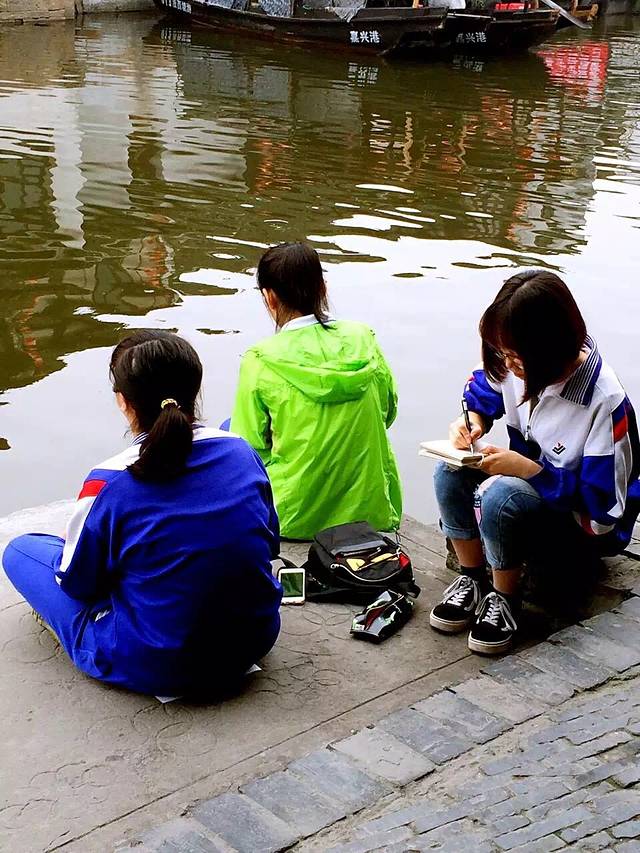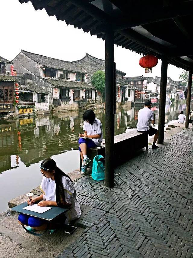我到达西塘时是为6月初,正好许多北方的高中生趁着高考假期到这里写生,烟雨长廊上一排坐的孩子们也成了这里最美,最认真的风景。都说西塘商业化,现代化的时代,实在无法避免,但是这样的作画方式还有上面提到的一壶酒一只笛静坐,总能够找到适合自己的方式感受这一片江南的水韵。