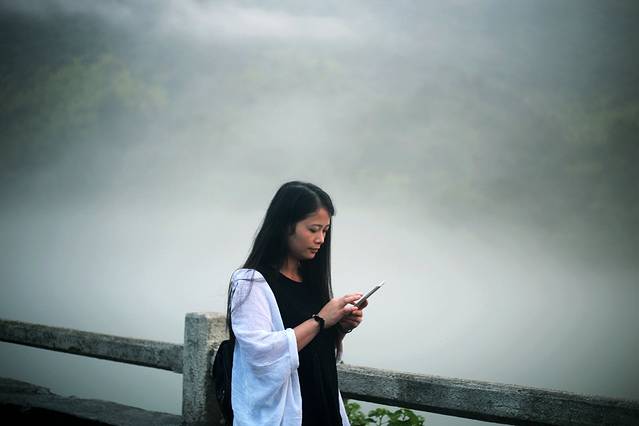 当小东江的壮观的美景,遇上定焦头会是什么样的风景呢,我从来也没有想过拿着1.8光圈50人像定镜头去拍风景。这次湖南行就让我尝试到了面对漂亮壮观的风景定焦头会是什么样的难堪境地。无奈的面对小东江那壮观的美景,手机这时候派上用场了。