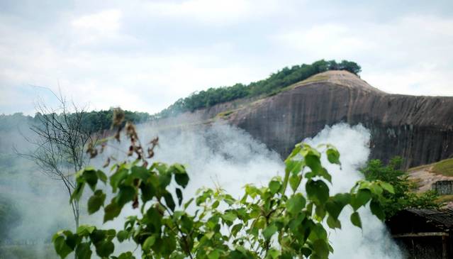 远处那磨菇似的白云仔细一看并不是云朵而是发电厂喷出的烟雾