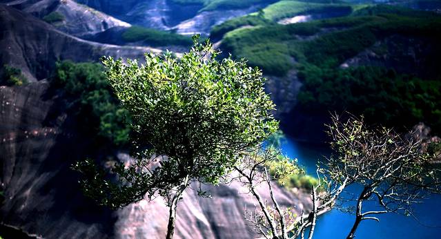悬崖边上已经枯萎的树还在在守护着这片美景