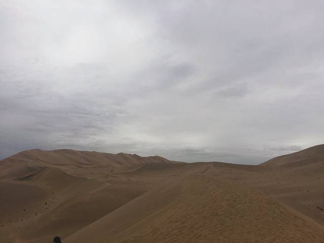 我们在鸣沙山坐的越野车上山,100块一人,和骑骆驼的价格一样,但骑骆驼的人实在是太多了,密密麻麻的,就坐越野车从另外一边上的山,但是要想爬到山顶的话还得自己爬上去,用梯子爬的话必须要交滑沙的钱,没事儿,交吧滑吧,但是!!那个梯子实在是太长太长了,爬得脚都软了都感觉还没看到尽头,宝宝心里是懵逼的,但辛苦总是有回报的,滑下来的一瞬间简直太爽了,爽翻!!!