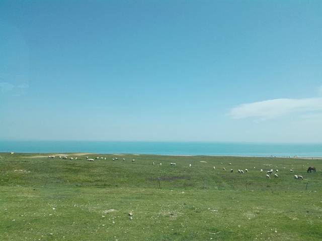 上午告别青海湖还有点不舍,停下脚步,再次亲密接触青海湖……蔚蓝色的湖水伸向远方,海天一色的美景……怎是一个“”美“”可以概括的……慢慢享受这一刻吧……