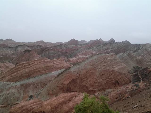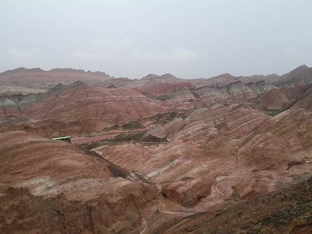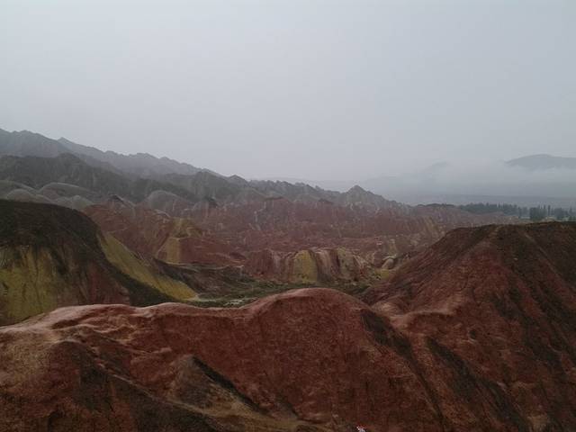 这里需要充分发挥你的想象,看着那此起披伏、层峦叠嶂的山丘,色彩绚丽的丹霞地貌,她的美是在你的脑海之中~~我由衷感叹大自然的神奇!!!(又是小雨,虽没有看到落日丹霞,但也别有一番风景。)
