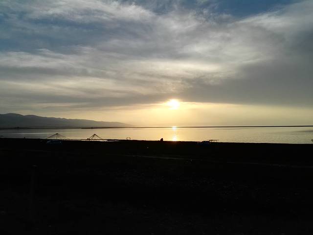 穿越柴达木盆地,下午我们走进了有“”天空之镜“”美誉的~茶卡盐湖。人实在太多,从景区的门口进去到景点要步行3公里,真是考验人啊(排队坐小火车的人实在太多)……这里的美需要静静的去欣赏!(这里浙江的老板包下了,浙江人免票的~羡慕幸福的浙江人!)