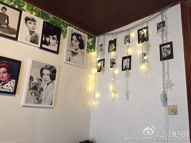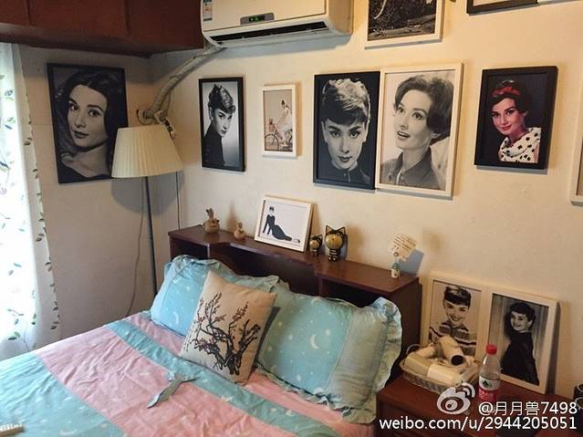 奥黛丽赫本风格的房间,装饰着赫本的各种照片,暖色的灯光,温柔的色调,家的气息扑面而来。