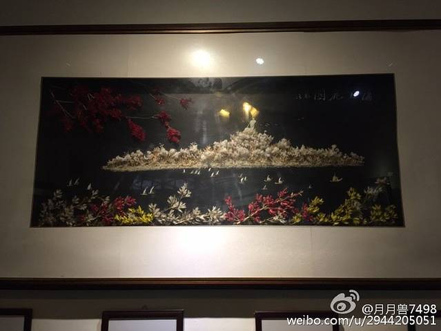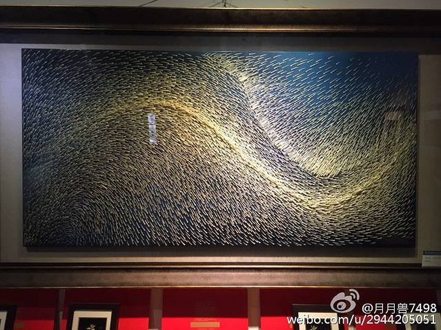 里面陈列着陈翰冰大师的鱼骨作品,所有的作品都是用鱼身上的部位构成的,鱼骨、鱼鳞、鱼眼……大师用细小的零件做出了恢弘的效果,仿佛画作中的每一处都有了灵性,身临其中感受到了灵魂的震颤。