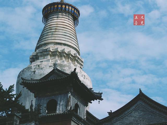 大白塔是五台山的标志~~大白塔耸人云天,在红墙、琉璃瓦殿顶的陪衬下,显得巍峨壮观 ~~