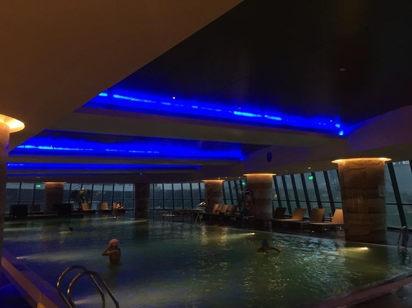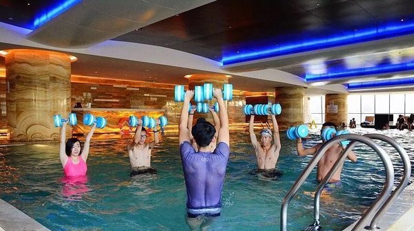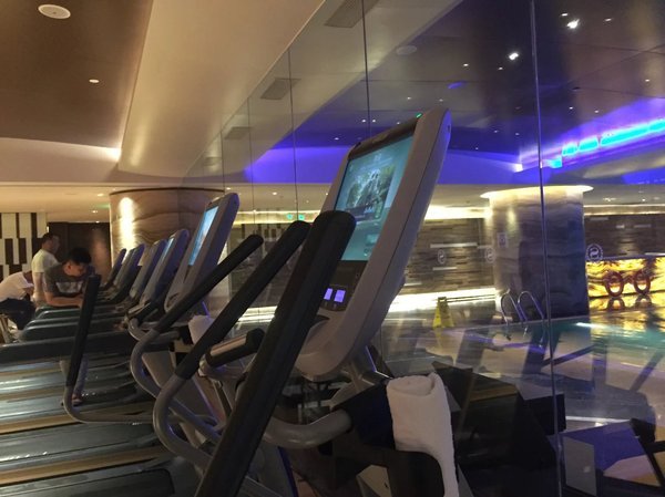 晚餐在盛宴标帜餐厅吃完,就前往健身中心体验,水疗中心让疲惫的身心来一次放松,还有室内恒温泳池,你还可以选择自己的私人教练哦,游泳健身,水上哑铃,瑜伽,自己都亲身体验了一把,运动之后真的太舒服了,除了自己体验的这几项还很多比较受欢迎的项目,比如太极、芭蕾等。