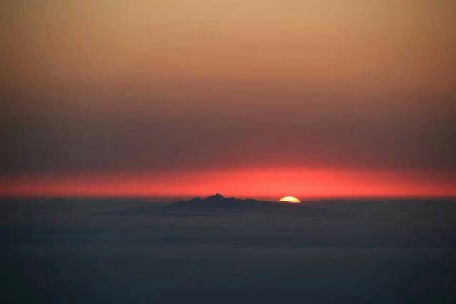 6点40分我们离开了“避风港”。10分钟到达我们开始找好的最佳位置,但已经被别人占领了,我们最后选了一个只能放下脚的山延边,但是对看日出来说位置特别棒!