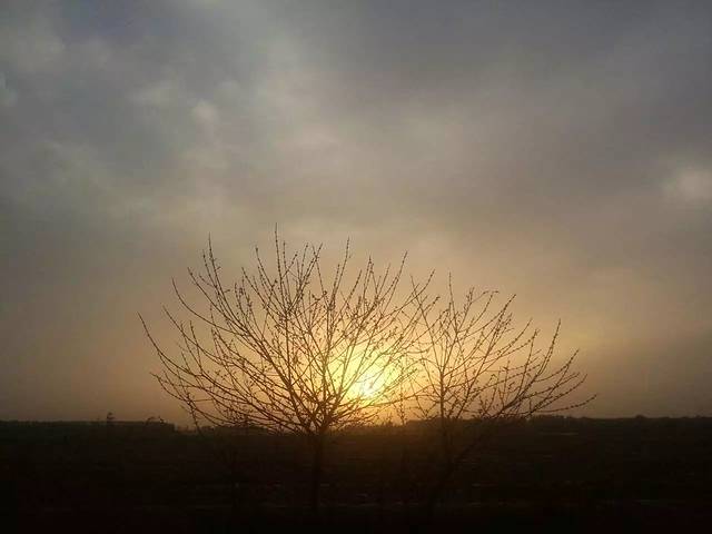 太阳出来了,太阳从云层中钻出,犹如小家碧玉般遮面含羞,