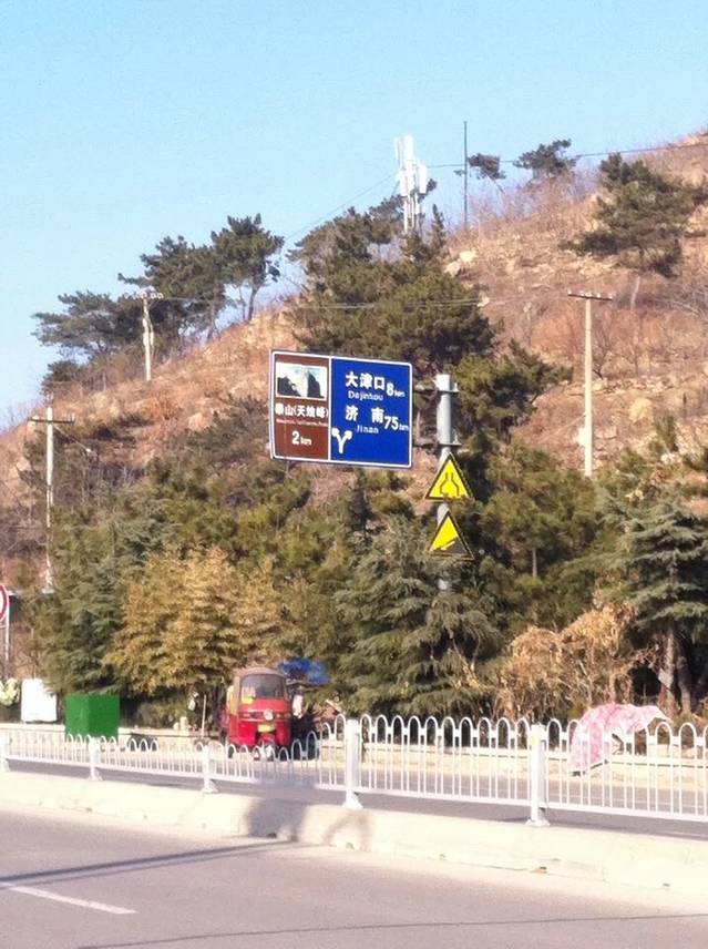 11点多一点,我们便开始了我们的徒步,从泰安走回济南,同伴多少了解路的情况!心想实在不行就打车回去!说说笑笑不知不觉就走出了泰安市区。我们决定走一段省道,然后绕道走小路。一路上走一段休息几分钟,看看路标,渴了喝杯红牛,结果我的红牛都成冰了,一杯红牛我喝了接近两个半小时才结束!一路上同伴的歌声一直陪着我们(虽然歌声不怎么地,吐槽一下...)但还是很谢谢同伴一路的支持陪伴!