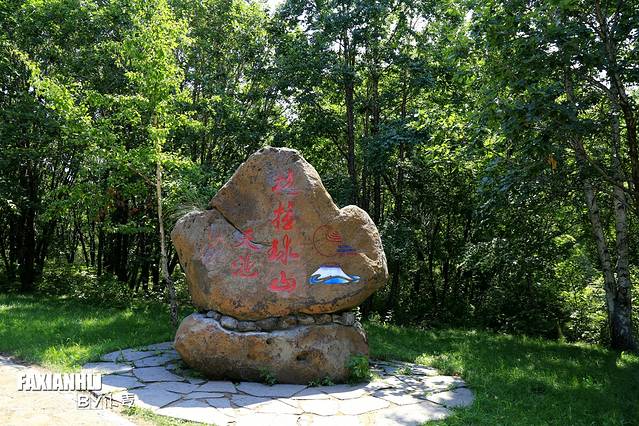 山口处仿格拉球山形状的玄武岩屹立其中,苍劲有力的“格拉球山天池”几个大字镌刻其上。