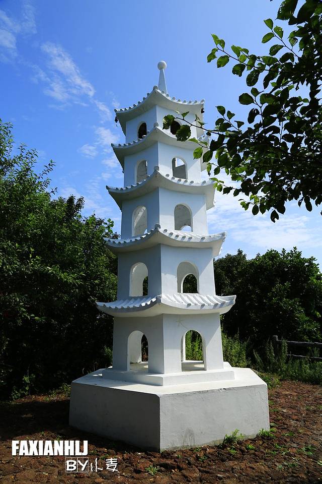 五分钟后来到顶峰,一座白塔耸立其中。白塔顶端的风铃随风摆动,悠扬铃声煞是好听。