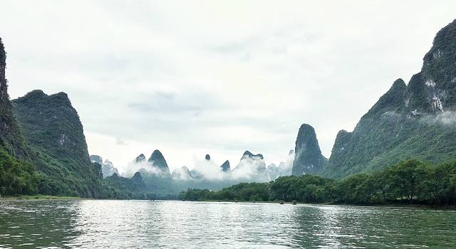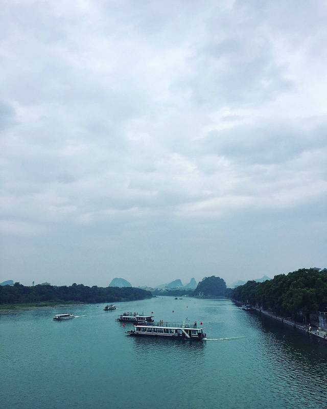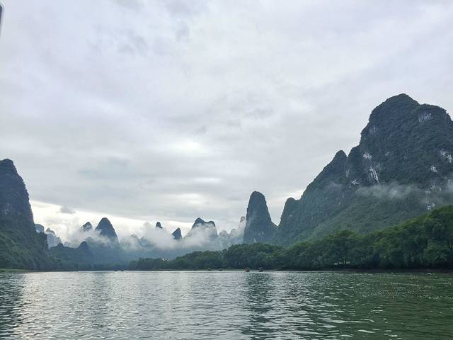 我们游的时候,刚好是雨后阴天,舒服得不得了,山上烟雾缭绕,江面泛着粼粼波光,桂林风景甲天下这一说可真不是盖的。坐着竹筏游着漓江,真是偷得浮生半日闲,什么烦恼都忘记了,十分推荐!