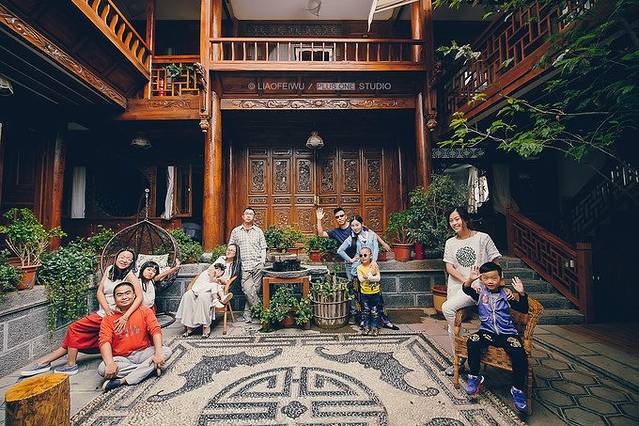 运气较好的是,我们临时找的客栈,就在停车场边上。要不然,还得拎着箱子,带着娃娃,满古城去找。古城里面门牌号之乱,按门牌号去找,很难找到。我们就看着2个妹纸,拎着行李箱,拿着手机,开着百度地图定位找客栈,绕来绕去没找到。