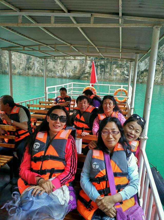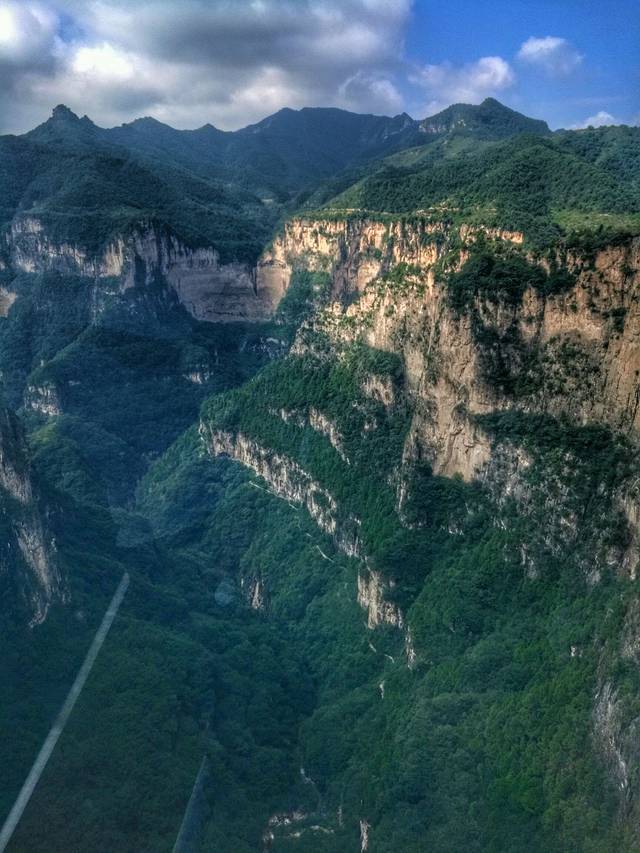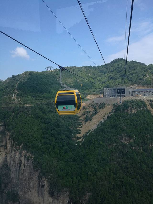 缆车载着我们慢慢登上山顶,当我们乘坐的缆车行驶到两座山峰之间时惊险一幕发生了,缆车突然停止,按照惯性缆车荡起了秋千,妈呀,瞬间心跳加速,第一时间想到拨打急救电话(还好高空有信号),停留片刻,缆车开始启动,可是却是反方向行驶,大伙的心都悬在了嗓子眼上,反方向也吧赶紧让我的脚接地气也就放心了,惊险的一幕再现,缆车又在半空中停了下来,荡起了秋千,两进两退简直让人崩溃。看着后面她们坐的缆车好是羡慕,她们的缆车还好能看到地面,我们的缆车从上看下去深不见底。惊心动魄之后两腿发软的我们下了缆车,啊,深呼吸一口,站在地上的感觉真好。