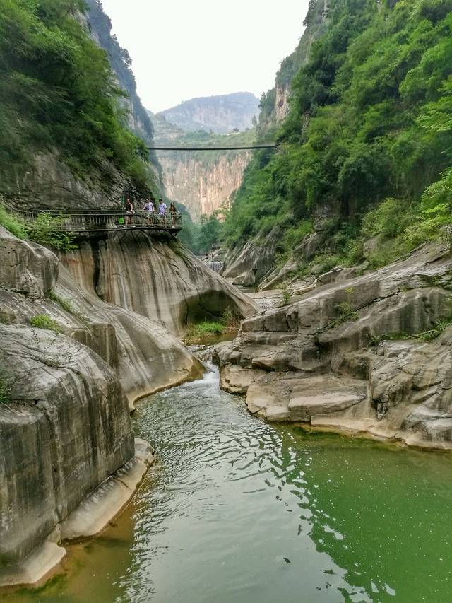 沿着栈道进入峡谷深处,清晨的景区游客比较少,我们慢慢的走仔细的看,惊叹大自然的美,深呼吸一下山涧空气,好舒服。